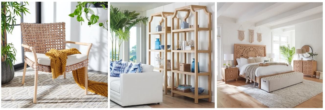 This style makes sense if you live in a tropical location because you can select locally sourced, aesthetic, and moisture-resistant furniture.