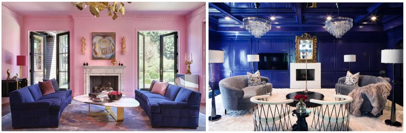 Hollywood Regency is another eclectic and luxurious interior design style. One thing I love about styles is that simply painting the wall or incorporating a symmetrical layout can take you leaps and bounds, especially if you are starting from scratch in your home or a particular room. I love these inspo photos from The Spruce! They show the prominence of luxurious light fixtures, royal blue (and other jewel tones), and various shades of pink in the Hollywood Regency style.