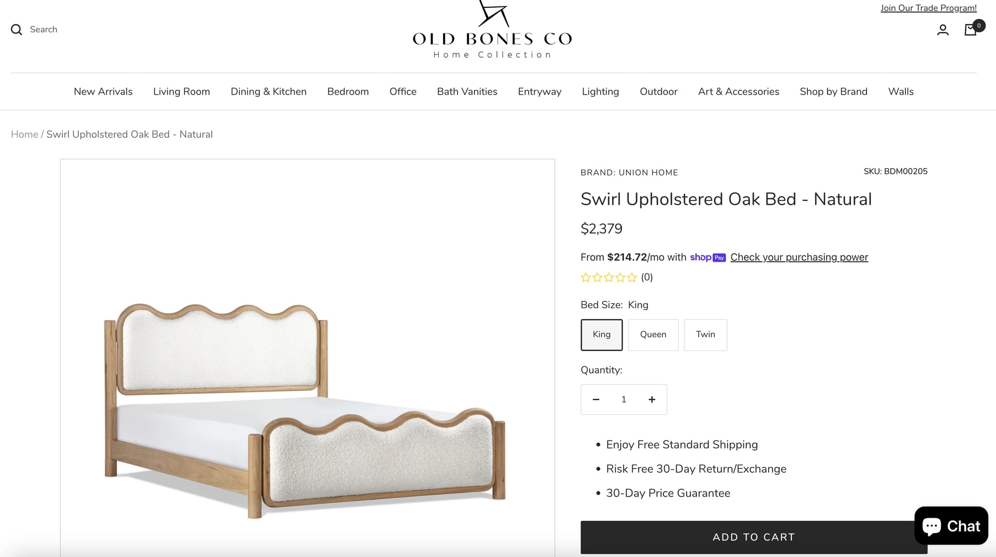4. Old Bones Co: Swirl Upholstered Oak Bed – Natural ($2,379.00 – saves $112)