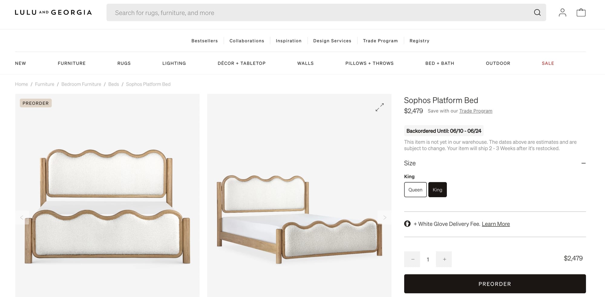 5. Lulu & Georgia: Sophos Platform Bed ($2,479.00 – saves $12)