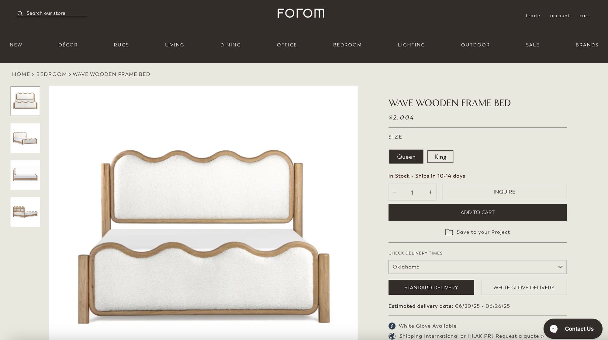 6. Forom: Wave Wooden Frame Bed ($2,479.00 – saves $12)
