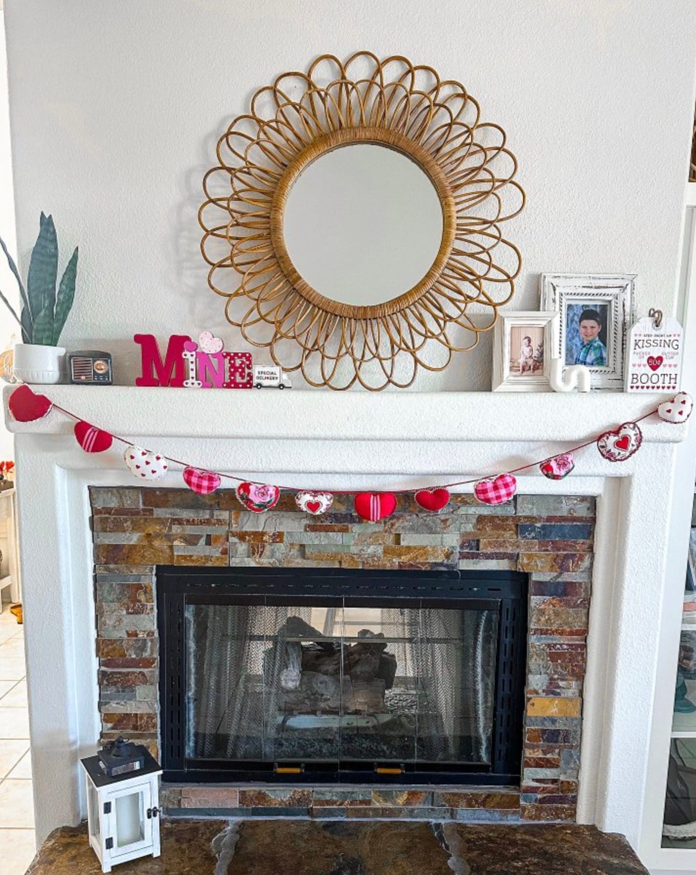 I love Target's playful mixed-pattern heart garland (pictured above). Target has lots of these garlands, and you can also find them on Etsy. You can try repurposing your red Christmas garland for a layered effect by hanging it alongside a heart garland, just slightly higher or lower.