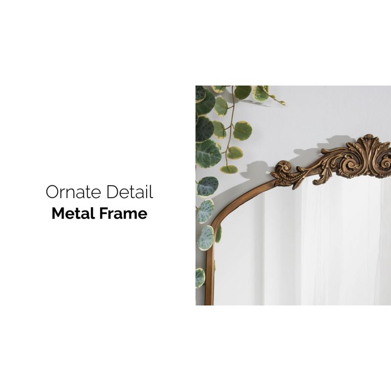Elevate your space with the Arendahl Baroque Gold Arch Wall Mirror. This luxurious piece features a baroque-inspired design with a resin garland crown and an arched iron frame, finished in antique gold. Perfect for adding dimension and light to any room, it's a statement piece that combines traditional elegance with timeless glamour.