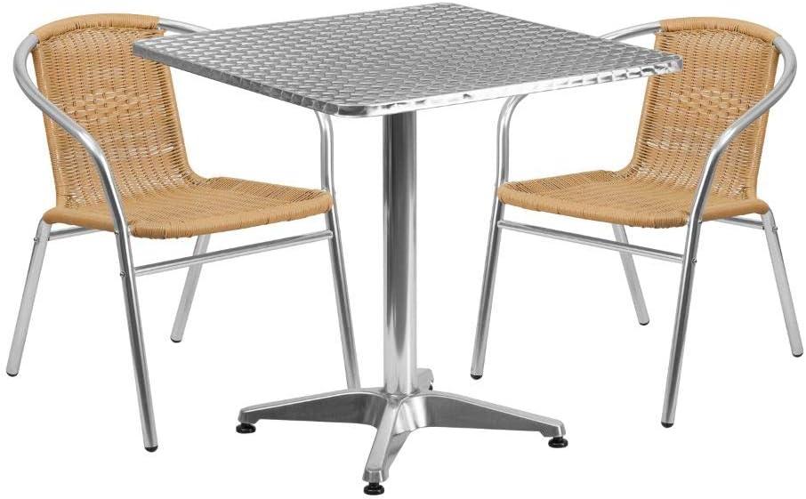 ,Flash Furniture 27.5'' Square Aluminum Indoor-Outdoor Table Set with 2 Beige Rattan Chairs at Amazon