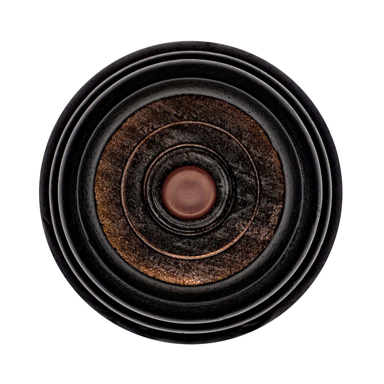 Enhance your furniture with this 6-inch stained espresso rubberwood bun foot leg. Expertly crafted for durability and style, it features a pre-installed hanger bolt for easy installation. Perfect for adding a decorative touch to any piece.