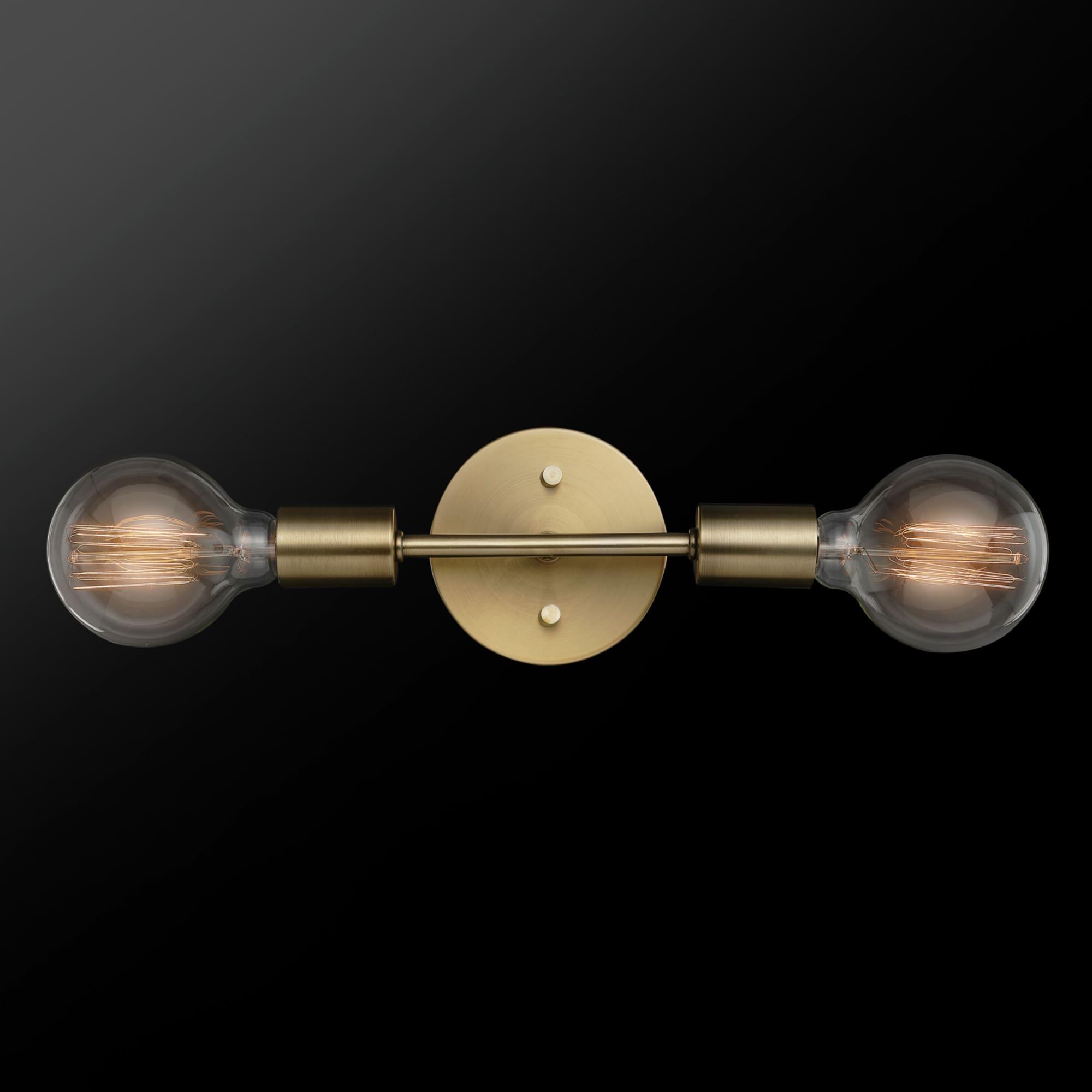 Elevate your space with the Alexandria 2-Light Vanity Light. Featuring a sleek brass finish and open socket design, this dimmable fixture adds a touch of minimalist elegance. Perfect for showcasing unique bulbs, it can be mounted vertically or horizontally to suit your style.