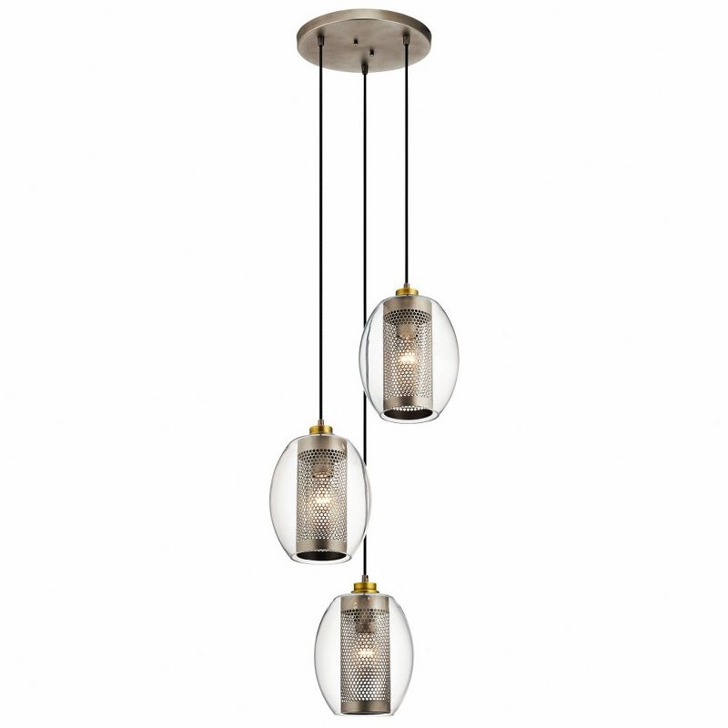 Elevate your space with this antique pewter 3-light pendant. Featuring clear glass shades and perforated metal interiors, it offers a perfect blend of industrial and vintage styles. Ideal for ambient lighting, this fixture adds a touch of elegance to any room.