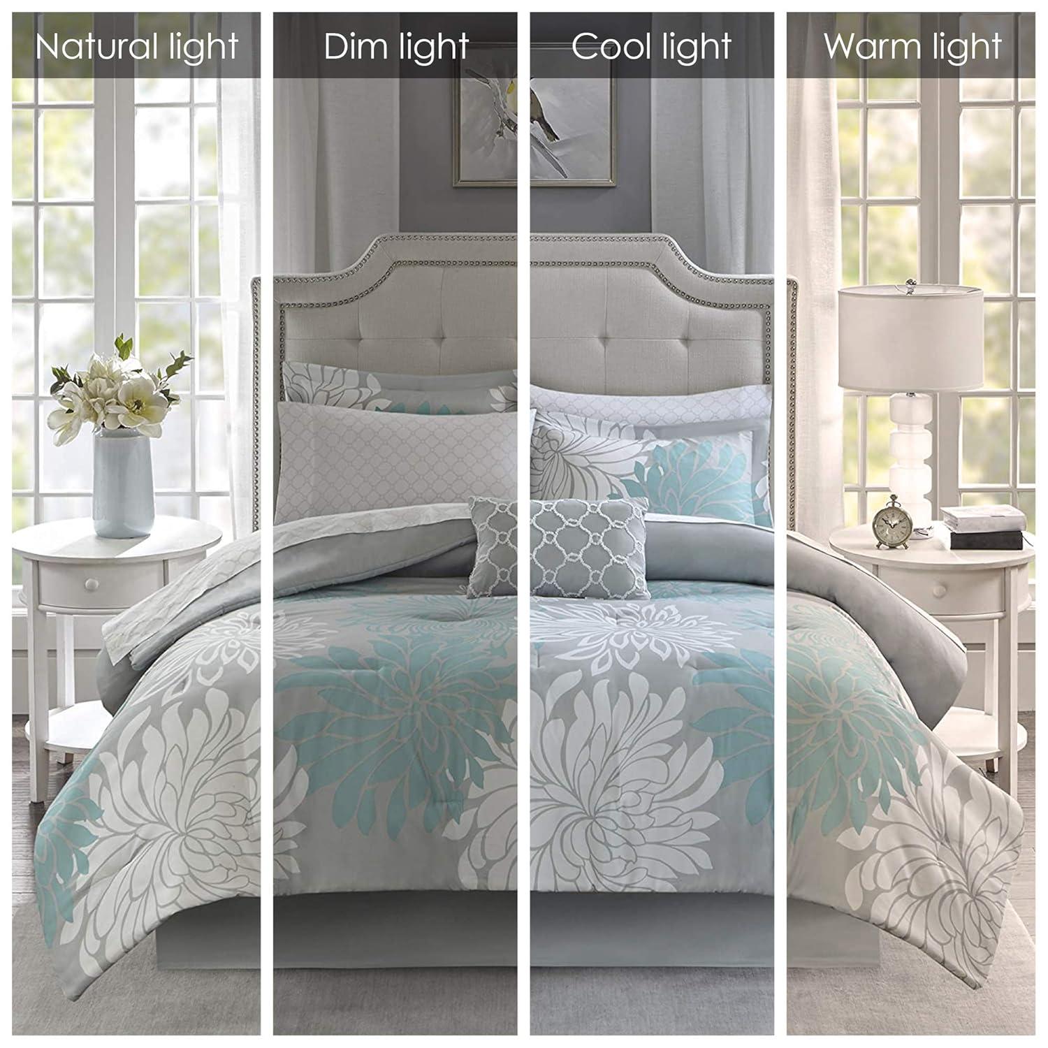 Aqua and Gray Floral Microfiber Full Comforter Set - Full Comforter + 8 Additional Pieces - Aqua