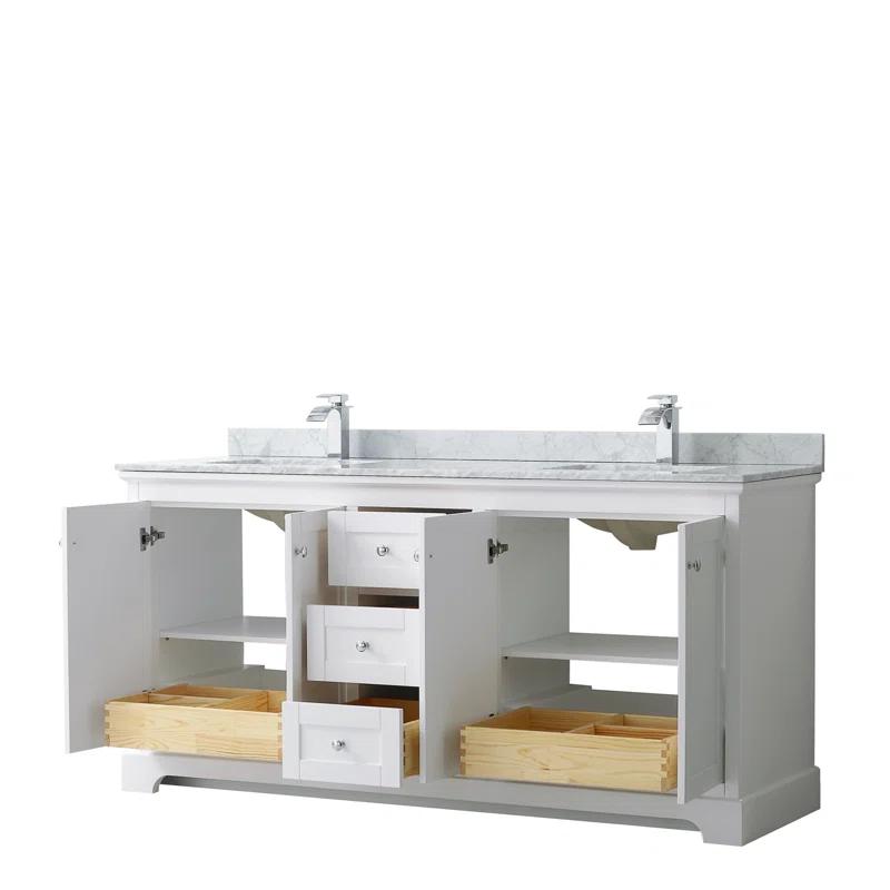 Elevate your bathroom with the Avery 72'' Double Bathroom Vanity. Featuring a luxurious white marble top and spacious storage options, this freestanding vanity blends modern elegance with practicality. Its soft-close drawers and doors enhance the serene atmosphere of any bathroom, making it a perfect centerpiece. Designed for durability and style, it promises a lifetime of beauty and functionality.