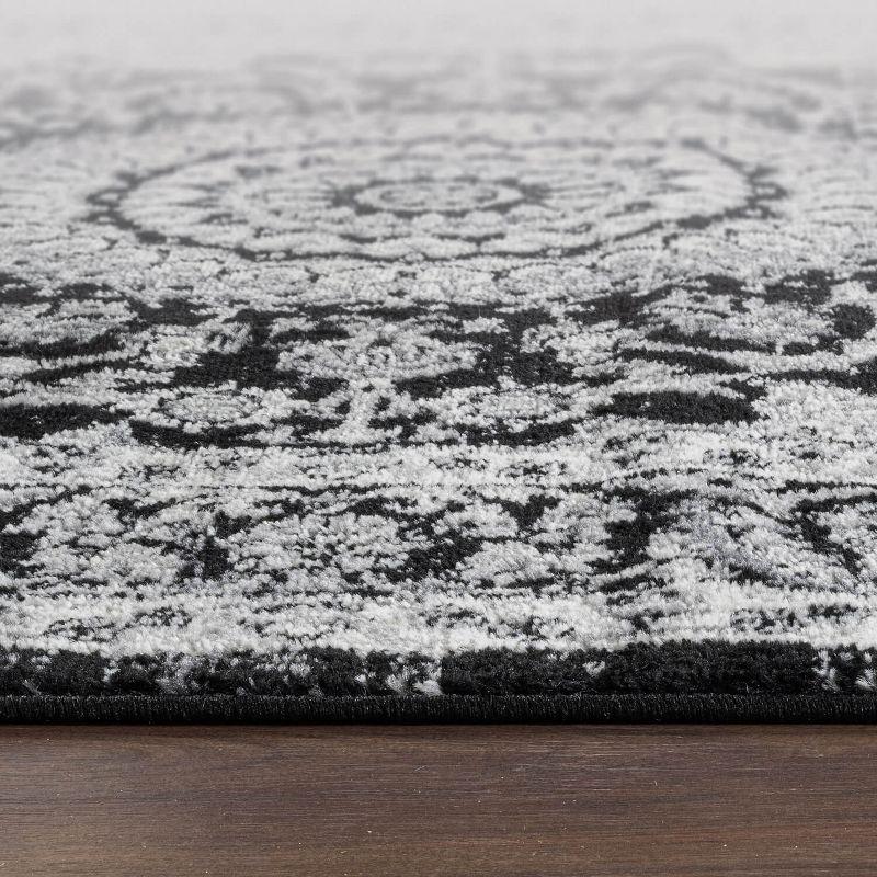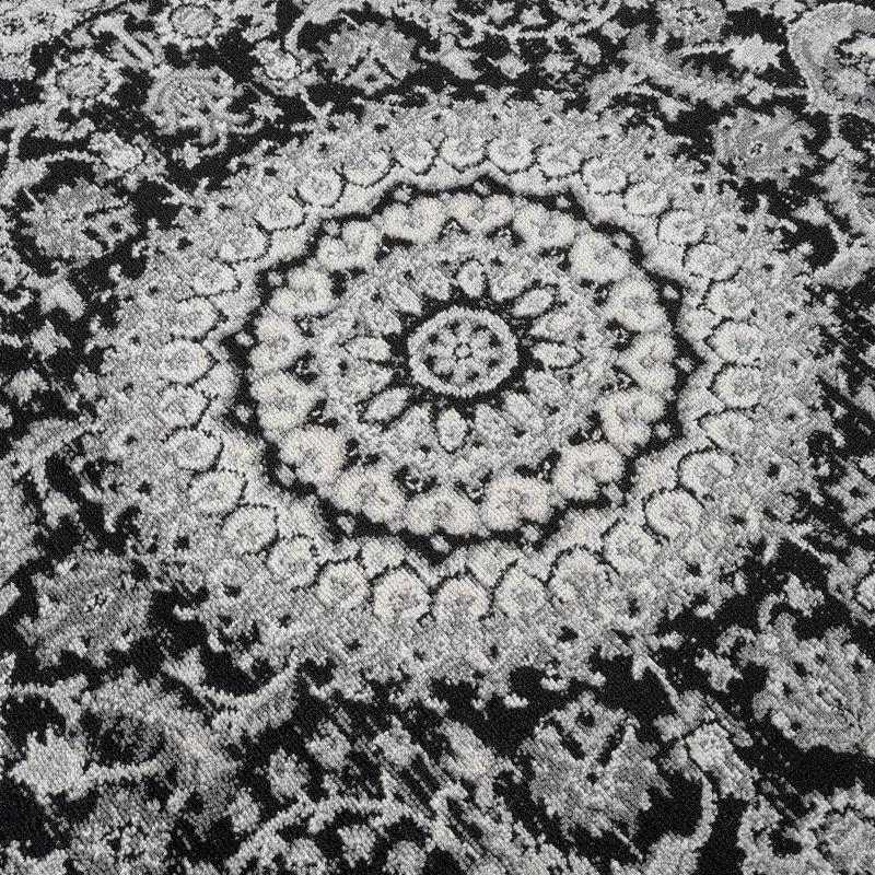 Black and Gray Synthetic Traditional Medallion Area Rug 2' x 3' - 2' x 3' - black - Black