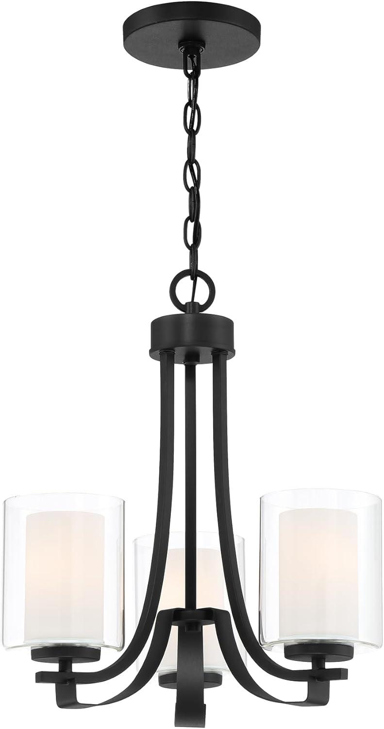 Minka Lavery Coal Black Pendant Chandelier 18" Wide Modern Clear Outer White Inner Glass 3-Light Fixture for Dining Room House