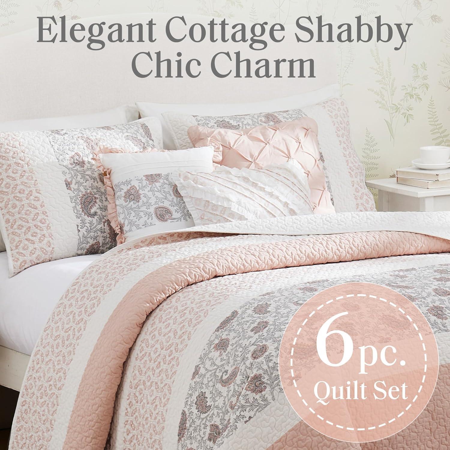 ,Madison Park 100% Cotton Quilt Set Floral Print, Double Sided Stitching, All Season, Lightweight Coverlet Shabby Chic Bedding Layer, Matching Shams, Full/Queen, Blush 6 Piece at Amazon