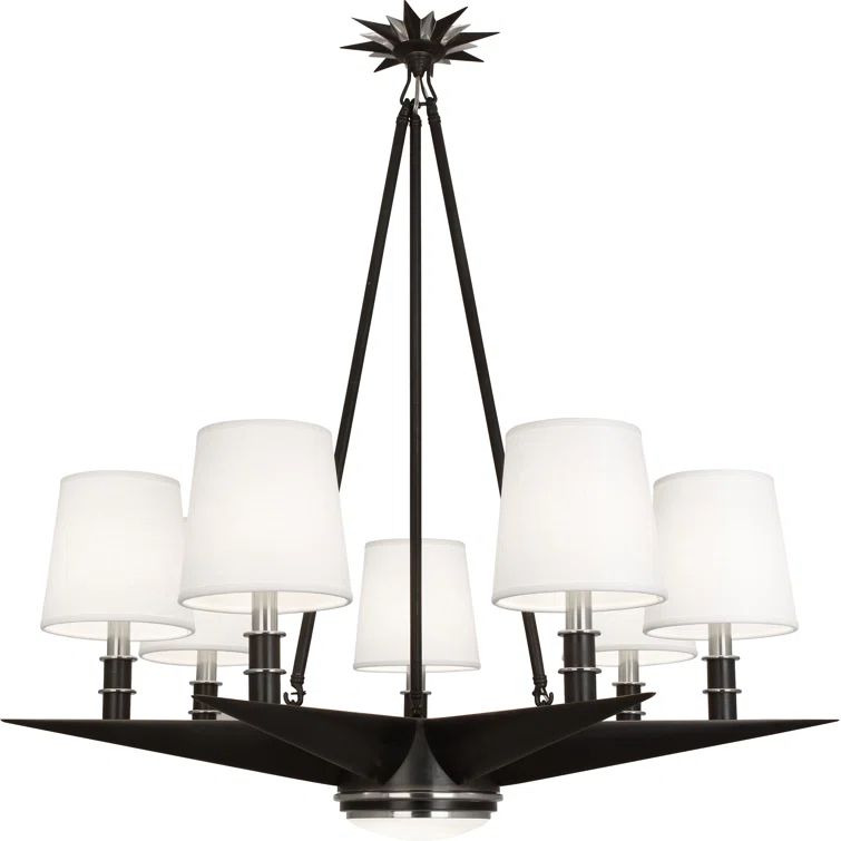 Illuminate your space with this stunning Bronze Sputnik Chandelier. Featuring a striking starburst design and linen shades, it offers a soft ambient glow. The plug-in feature and full range dimmer switch provide convenience and versatility, making it a perfect addition to any modern or industrial decor.