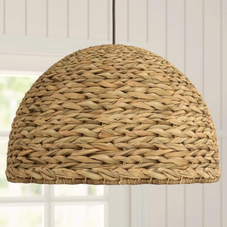 Illuminate your space with a touch of coastal charm. This pendant light features a unique braided seagrass dome, casting a warm, inviting glow. Perfect for creating a serene, beach-inspired ambiance in any room. Easy to install and UL approved.
