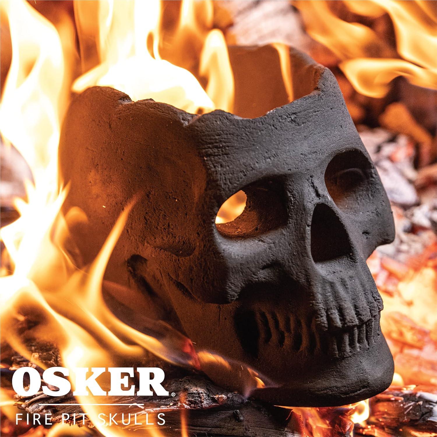 OSKER Ceramic Fireproof Fire Pit Skull Log for Bonfire, Campfire, Fireplace, Firepit | Halloween Decor | for Gas, Propane, or Wood Fires | 9 Inch - Light Beige