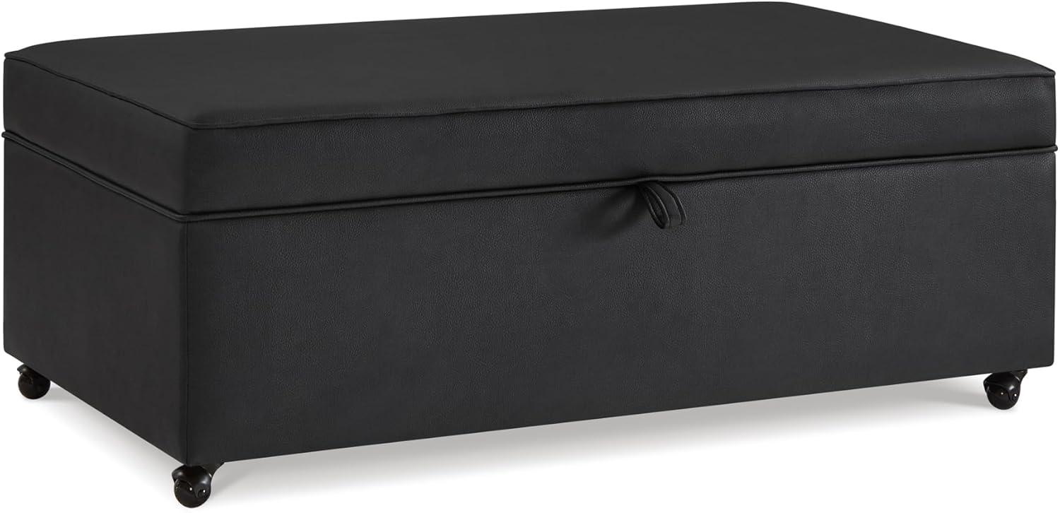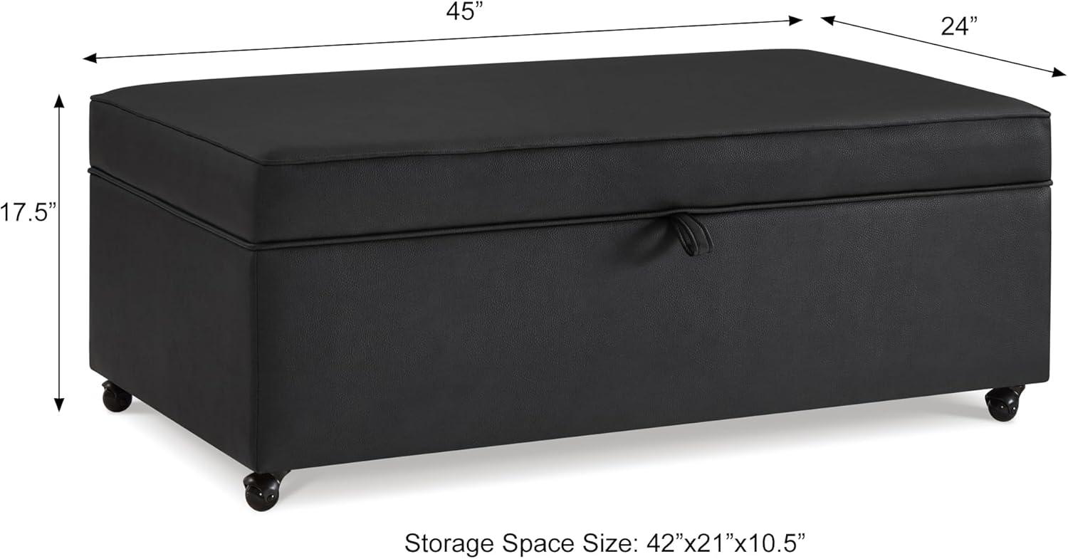 Dark Gray Faux Leather Storage Ottoman Bench with Wheels