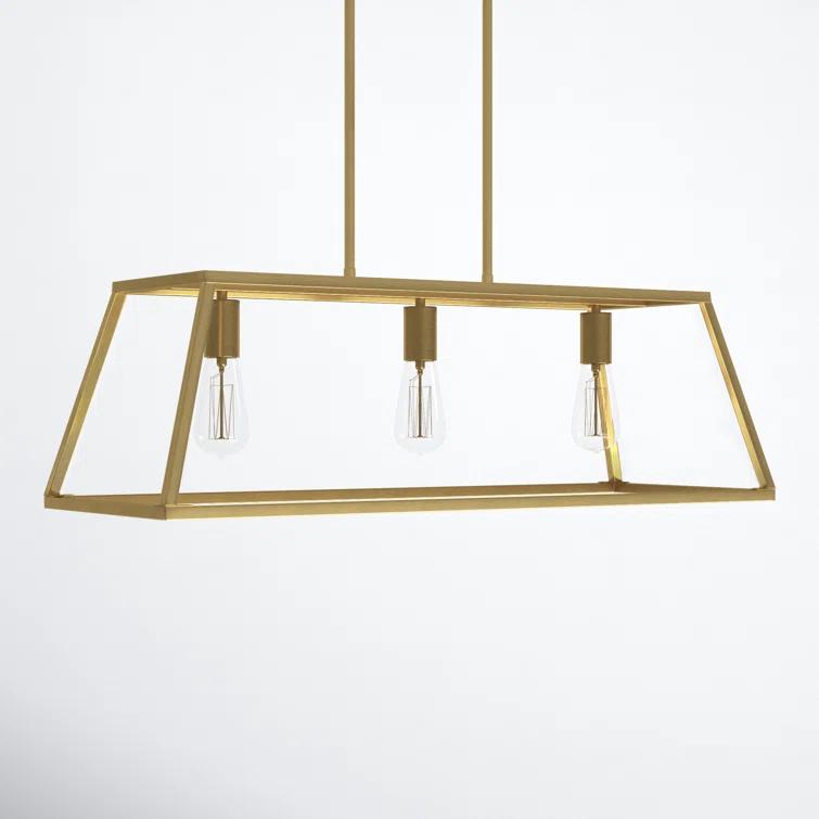 Elevate your space with the Denton Warm Brass 3-Light Linear Chandelier. Its sleek geometric design and warm brass finish blend seamlessly with various decor styles, providing perfect illumination for dining areas, kitchen islands, and more.