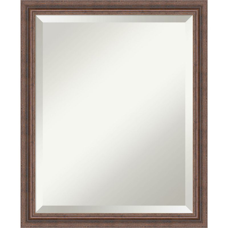Amanti Art Distressed Rustic Brown Beveled Wood Bathroom Wall Mirror 22.5 x 18.5 in.