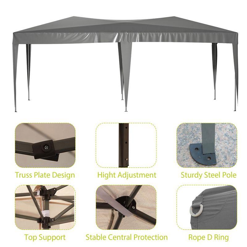 • 10x20in Pop Up Canopy, Canopy Tent With 6 Removable Sidewalls & Sand Bags & Pull Ropes, 12 Ground Stakes, Carry Bag, Gray