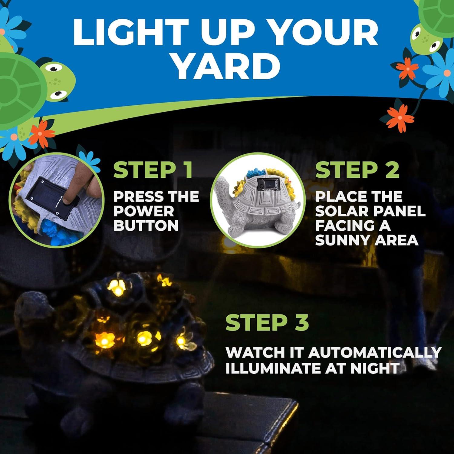 JLXTREME 7" Garden Decor Turtle Garden Statue, LED Lights