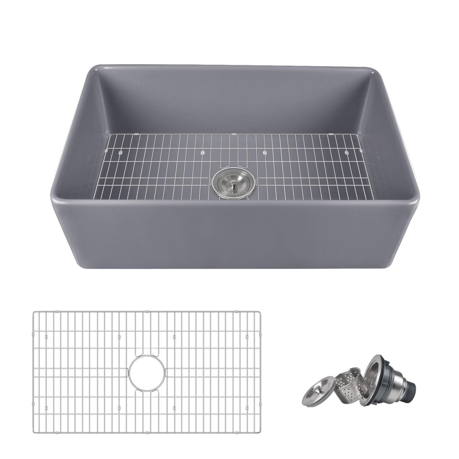 Grove 33" L X 18" W Rectangular Single Bowl Fireclay Farmhouse Kitchen Sink with Grid and Strainer