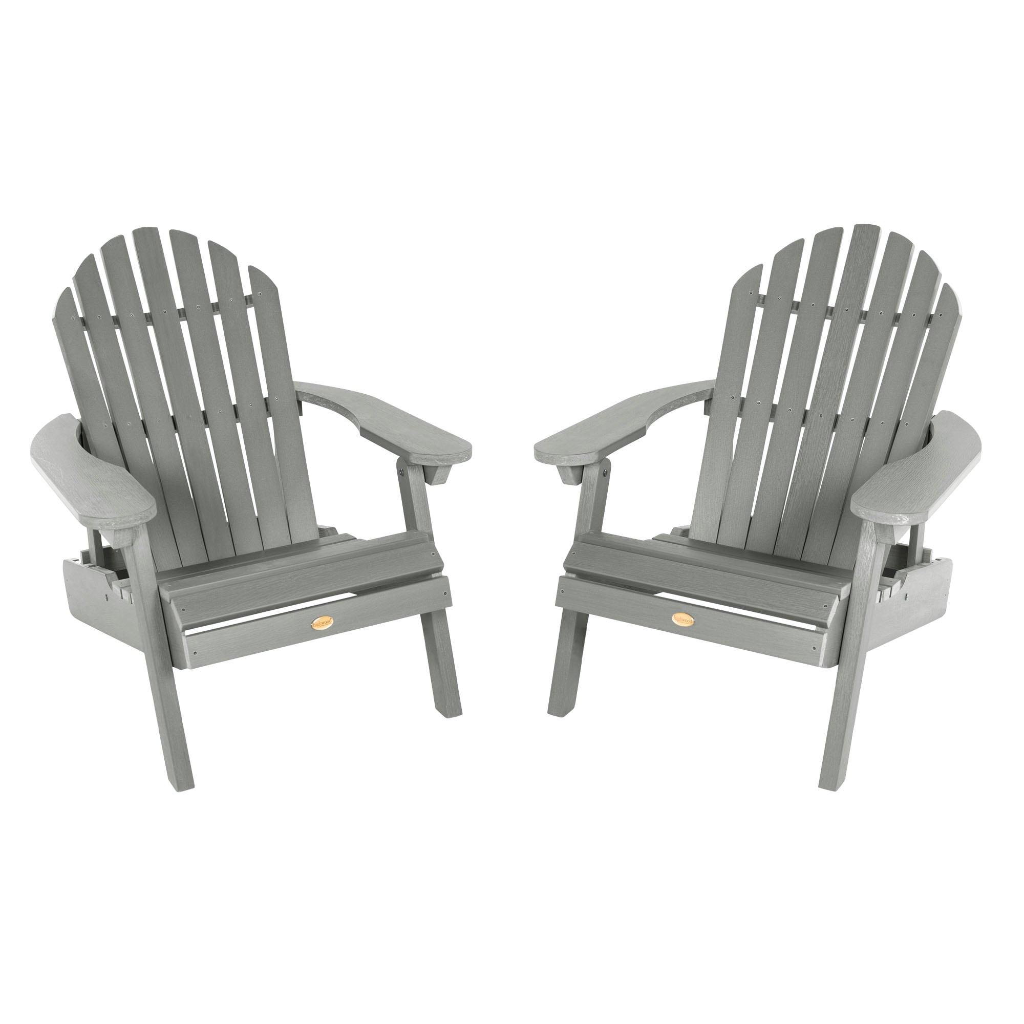 Hamilton 2pk Folding & Reclining Adirondack Chairs - Coastal Teak - highwood: Weather-Resistant Outdoor Seating