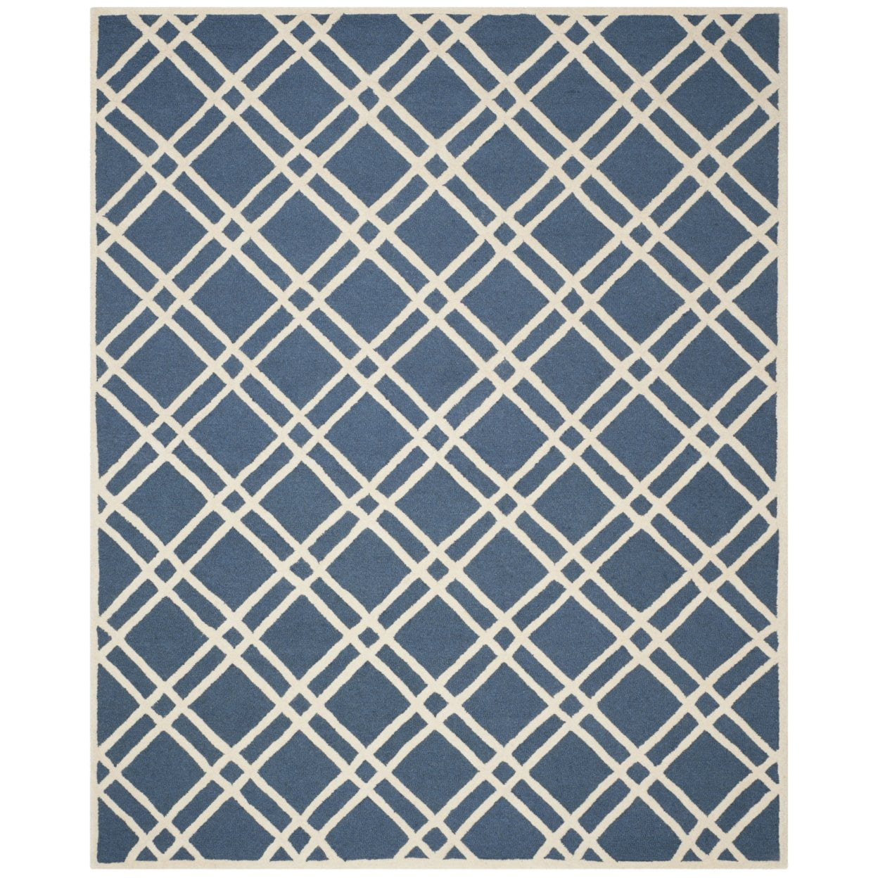 SAFAVIEH Cambridge Judy Geometric Wool Area Rug, Navy Blue/Ivory, 4' x 6'