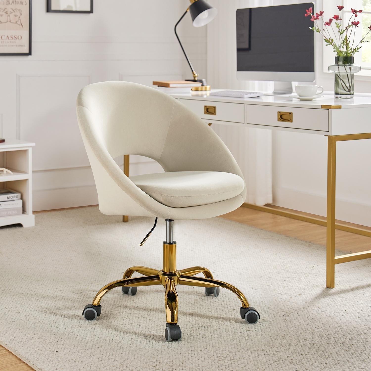 Ivory Velvet Ergonomic Swivel Task Chair with Wood & Metal Frame - Ivory Velvet - IVORY