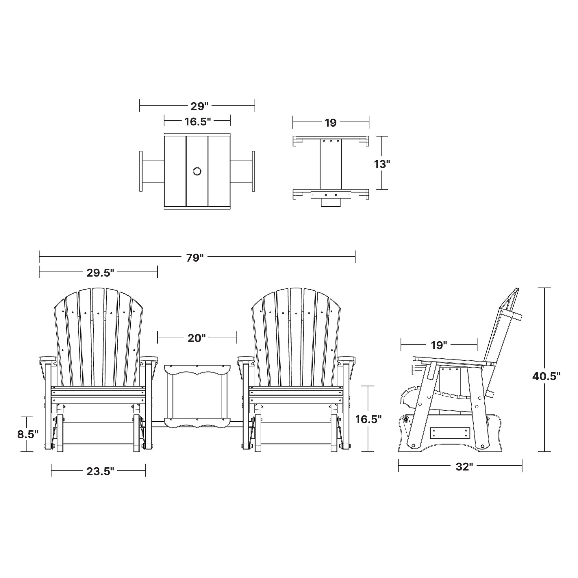 Enjoy the outdoors with the Heritage Double Glider Set. Featuring Adirondack-inspired design and a convenient central table, this set is perfect for holding beverages, snacks, or books. Made from durable poly lumber, it withstands the elements and requires minimal maintenance. Ideal for any porch or backyard.