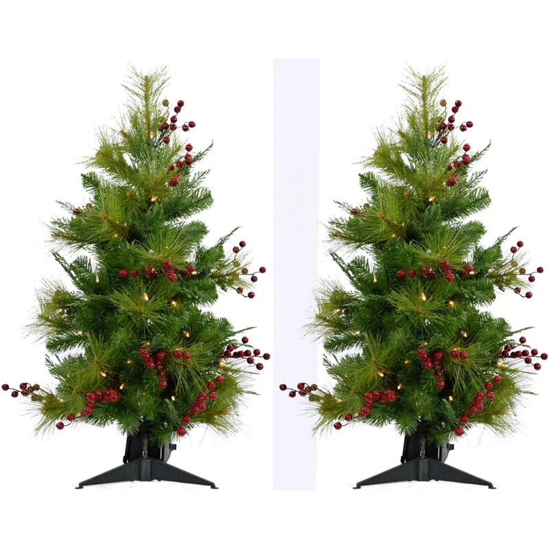 Fraser Hill Farm Homestead Newberry Pine 48' Lighted Pine Christmas Tree (Set of 2)