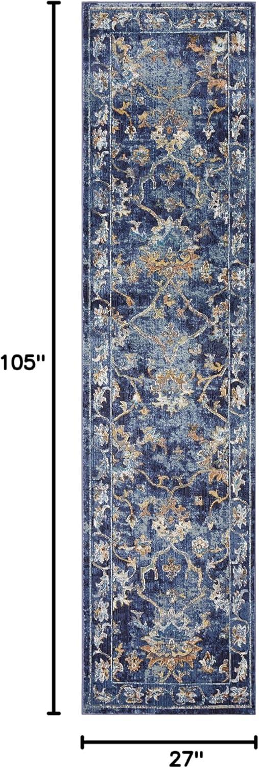 LR Home Ada 2'3" x 8'9" Indigo Bordered Floral Durable Indoor Area Rug
