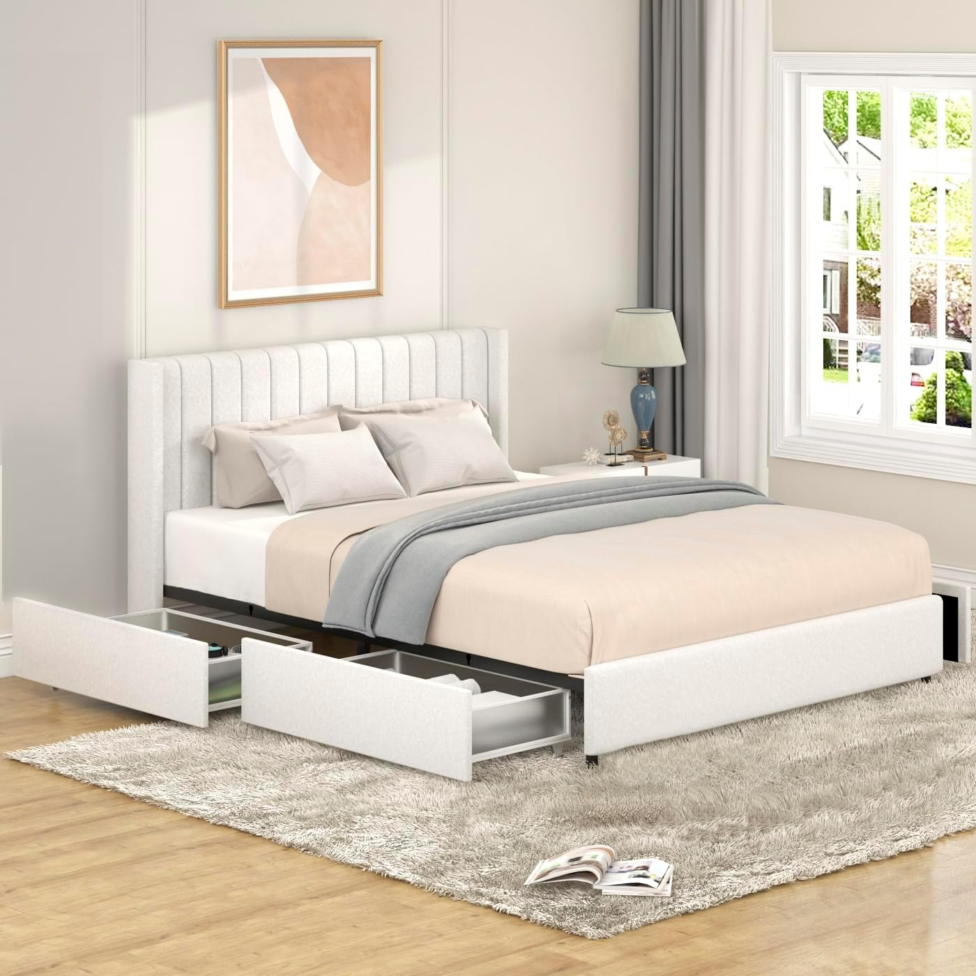 Amazon GDFStudio Upholstered Bed with Storage,Queen Size Platform Bed Frame with 4 Drawers Tufted Headboard, Wooden Slat Mattress Support No Box Spring Needed Easy Assembly, Ivory Boucle | $366.99 as of 07:41 08/19 |