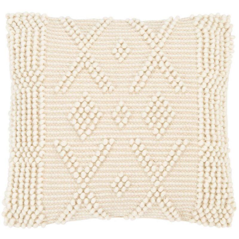 Add a touch of boho-chic to your space with this ivory embroidered wool blend throw pillow. Featuring a beautiful textured design and a soft polyfill insert, it's perfect for any room.