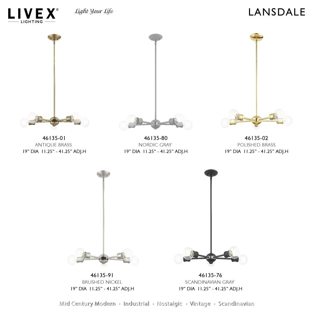 Elevate your space with the Lansdale Chandelier, blending simplicity with sophistication. Its polished brass finish and exposed bulbs create a playful yet contemporary mood, perfect for any dining area or kitchen. Adaptable to slope ceilings, this fixture ensures your lighting needs are met with style.