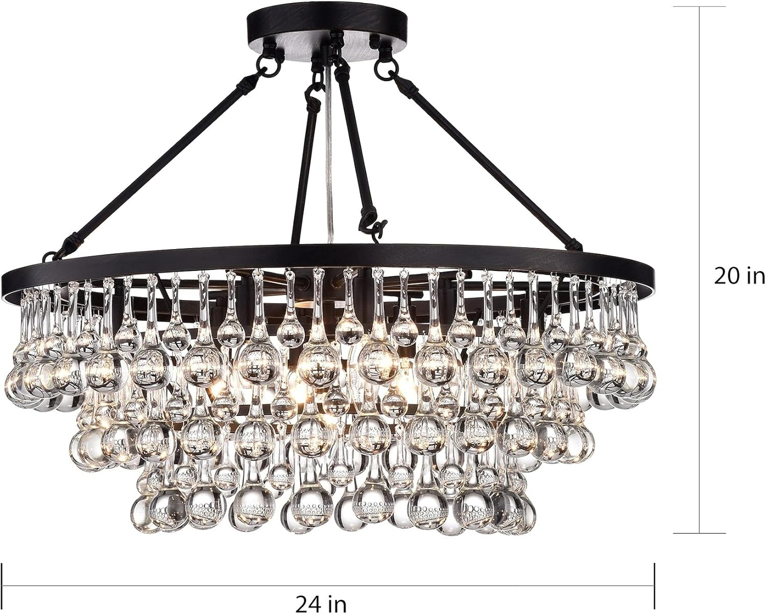 Illuminate your space with the Arosa 9-Light Semi Flush Mount, blending luxurious crystal accents with a sleek black finish. Perfect for adding a touch of contemporary whimsy and elegance, its candelabra lights and round iron frame enhance any room's ambiance.
