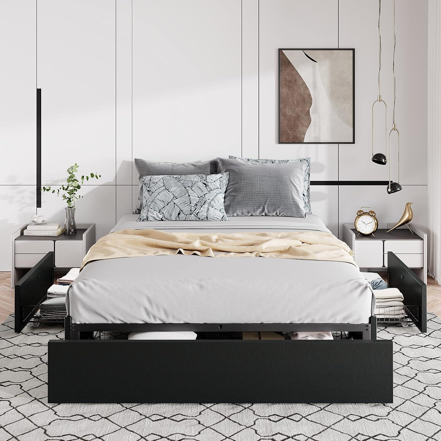 Allewie Queen Size Platform Bed Frame with 3 Storage Drawers, Faux Leather Upholstered, Wooden Slats Support, No Box Spring Needed, Easy Assembly, Black at Amazon