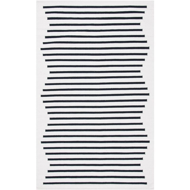 Elevate your space with the Montauk Handwoven Cotton Area Rug. This 4' x 6' rug features a striking black and white design, perfect for modern and coastal decor. Handmade from 100% cotton, it offers durability and a soft touch.