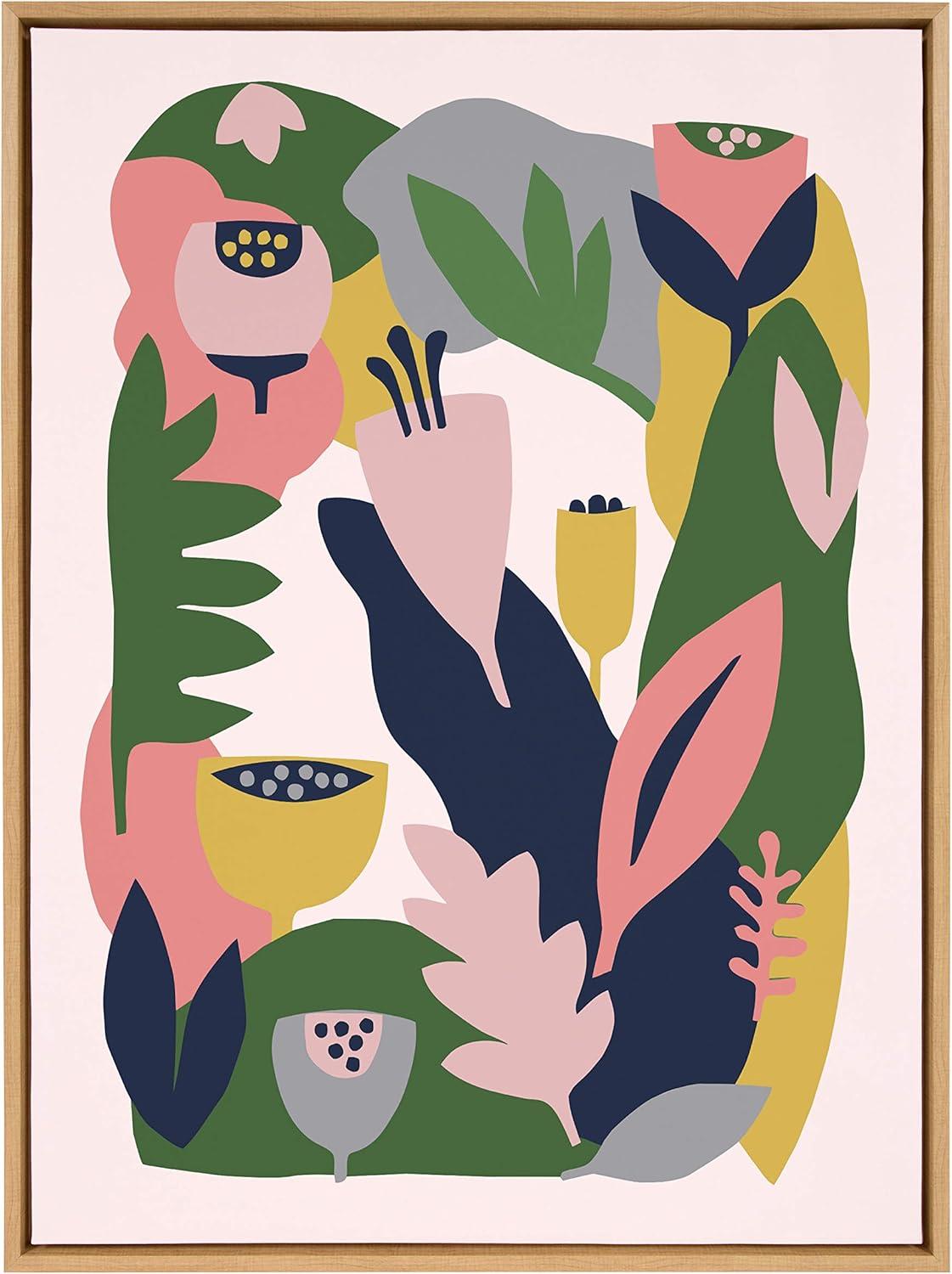Myriam's Garden Colorful Nature-Inspired Canvas Print with Natural Frame - Natural - 28" x 38"