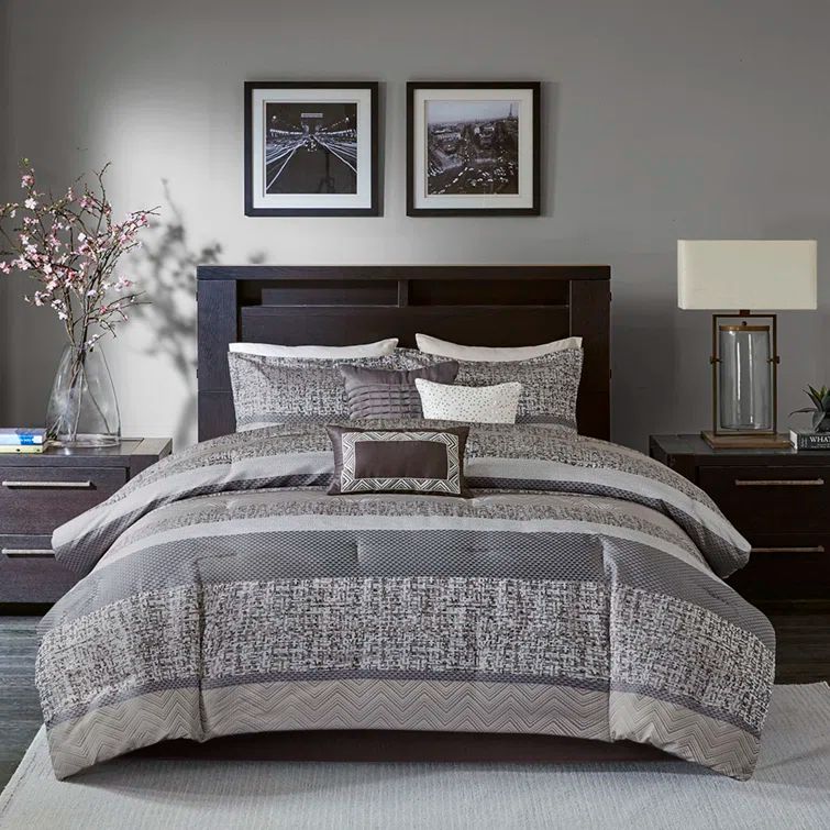 King Grey and Taupe Jacquard Comforter Set with Decorative Pillows - Gray/Taupe - King Comforter + 6 Additional Pieces