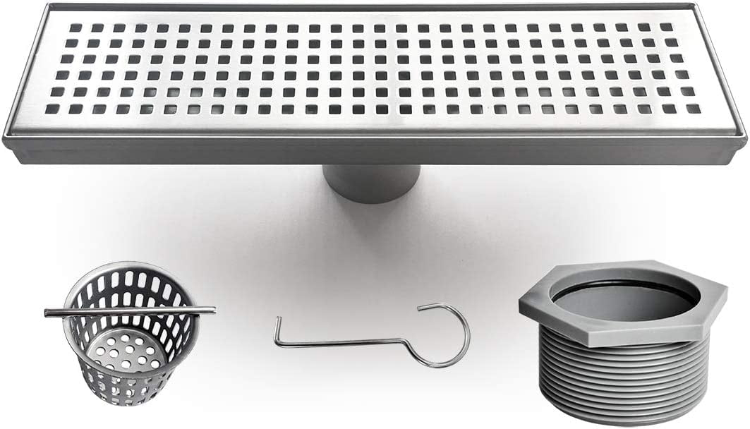 Neodrain 12-Inch Linear Shower Drain with Removable Grate, Professional Brushed 304 Stainless Steel Rectangle Shower Floor Drain Manufacturer, Linear Drain with Hair Strainer at Amazon