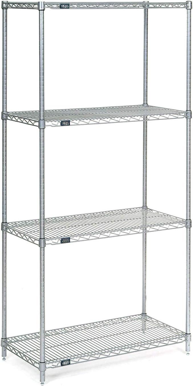 Nexel VP24487NC 24 x 48 x 74 in. 4 Tier Economy Wire Shelving Starter Unit, Nickel Chrome
