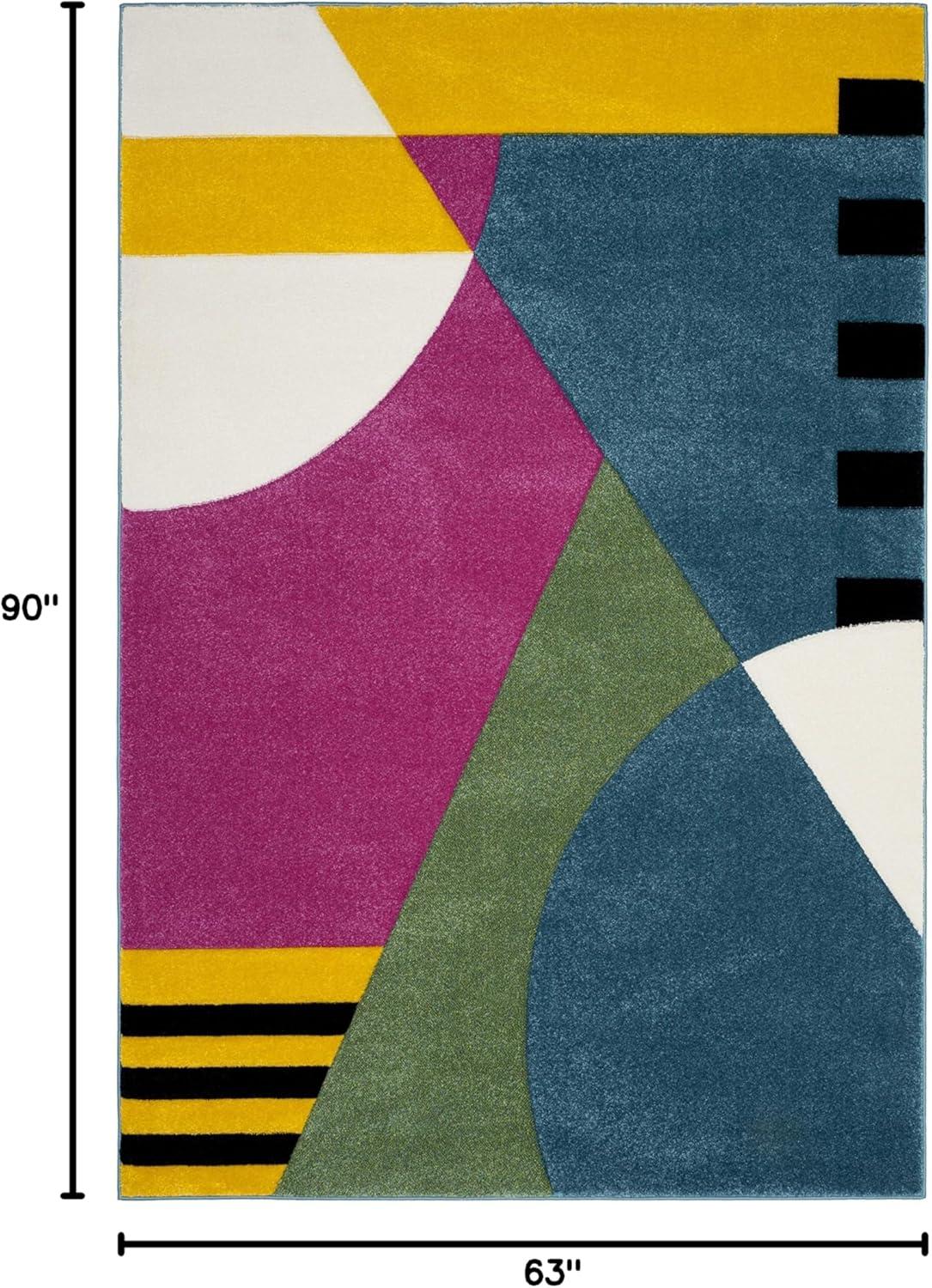 Peacock Blue Fuchsia Mid-Century Modern Synthetic Area Rug - 2'3" x 4' - 2'3"x4' - peacock blue/fuchsia - 2' 3" x 4'