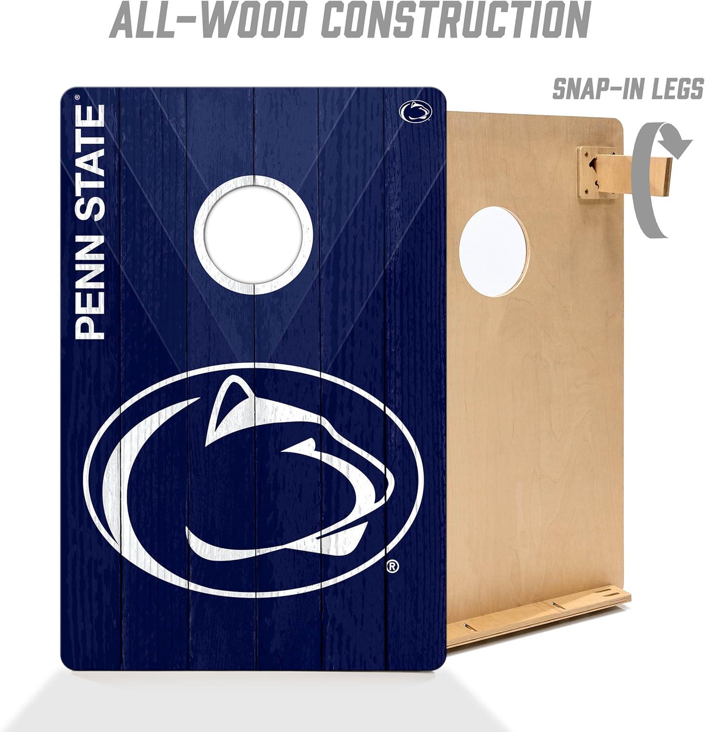 Elevate your game-day experience with this Penn State Nittany Lions cornhole game set. Featuring durable all-wood construction and vibrant team graphics, this 2' x 3' set is perfect for tailgating or backyard fun. Includes bean bags for immediate play.
