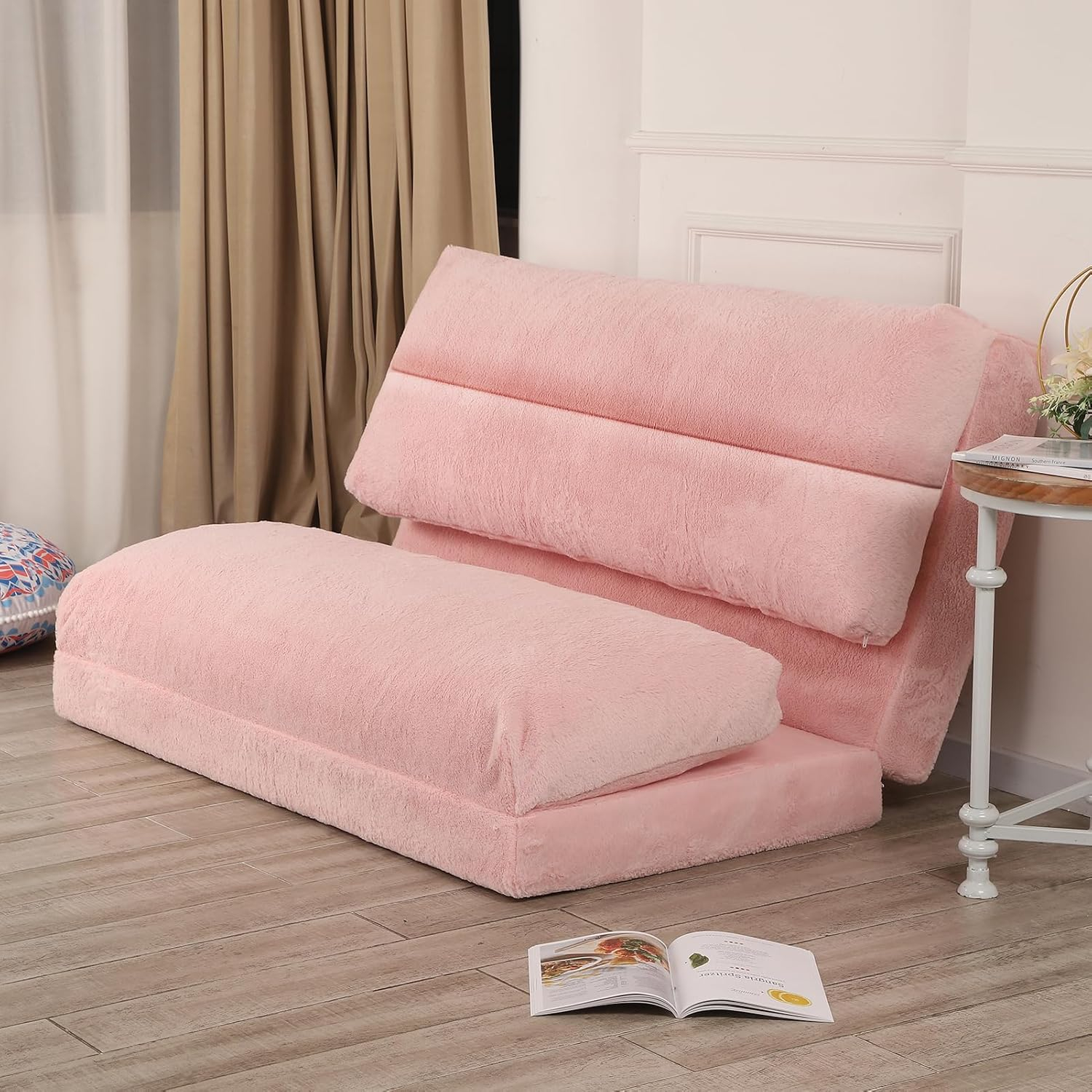 Experience ultimate comfort with this pink faux fur sleeper sofa bed. Perfect for any living space, it easily converts from a sofa to a bed. The high-density foam provides excellent support, while the washable cover ensures easy maintenance.
