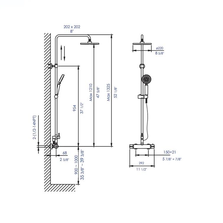 Elevate your shower experience with this sleek, modern shower system. Featuring a polished chrome finish, adjustable height, and multi-head design, it offers both a rain showerhead and handheld option. Enjoy the perfect blend of style and functionality.
