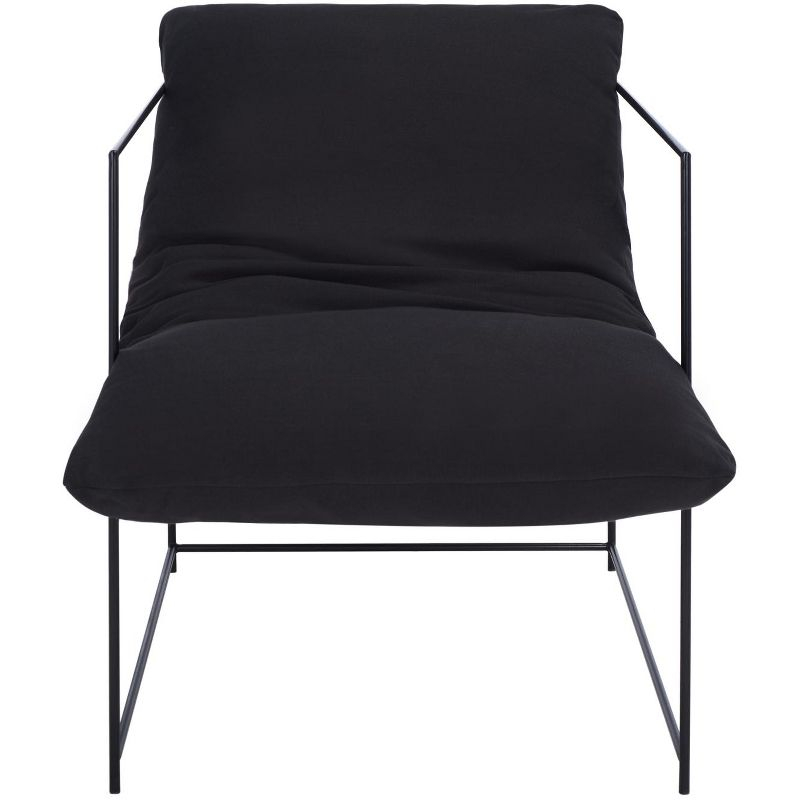 Embrace minimalist elegance with the Portland Accent Chair, featuring a luxurious black linen pillow top for supreme comfort. Its open black iron frame ensures a spacious, airy feel, perfectly balancing clean lines with organic curves. Ideal for those who appreciate a sleek, modern design with a cozy touch.