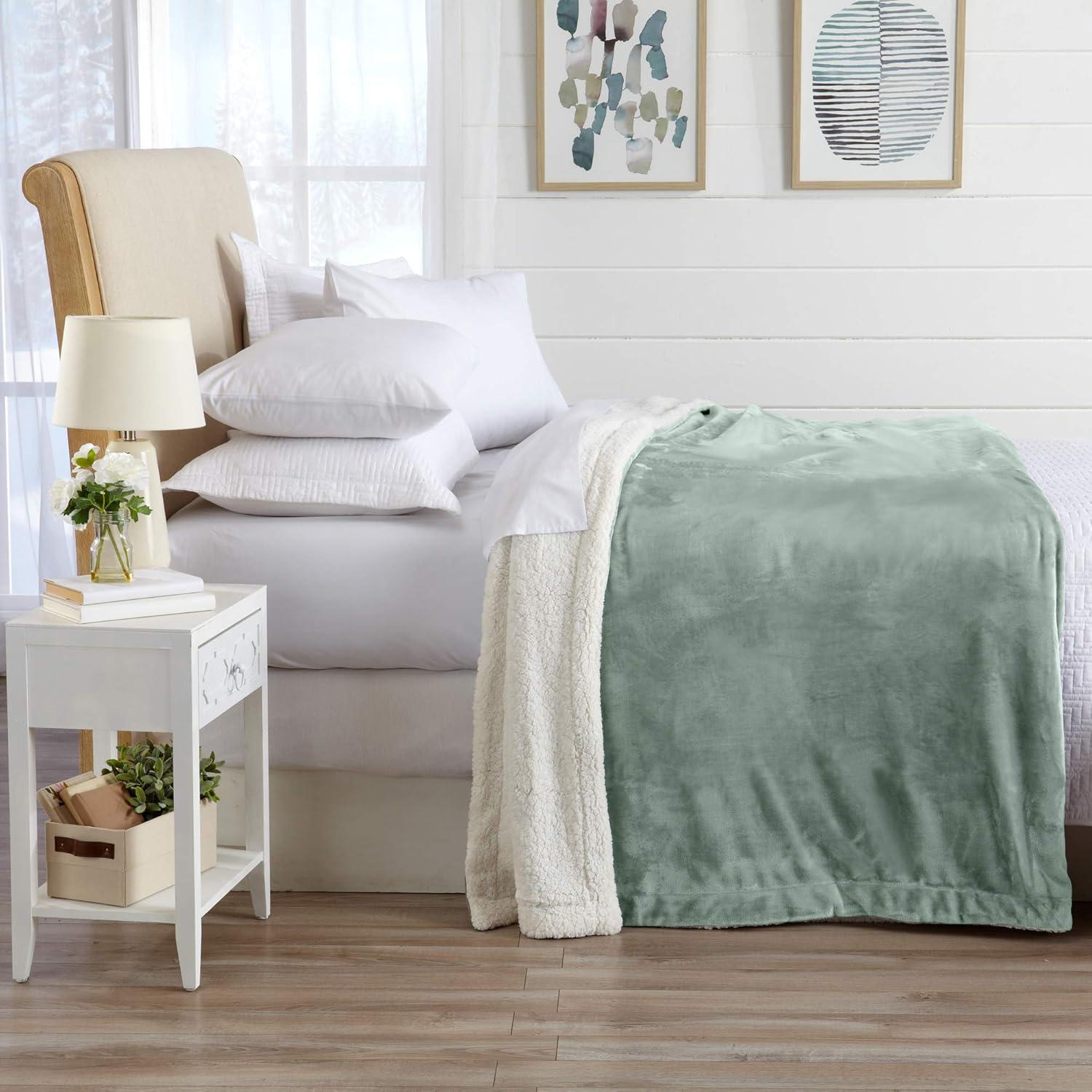 Twin Optic White Fleece Sherpa Reversible Blanket - Twin - Loden Green - twin - optic white - Optic White