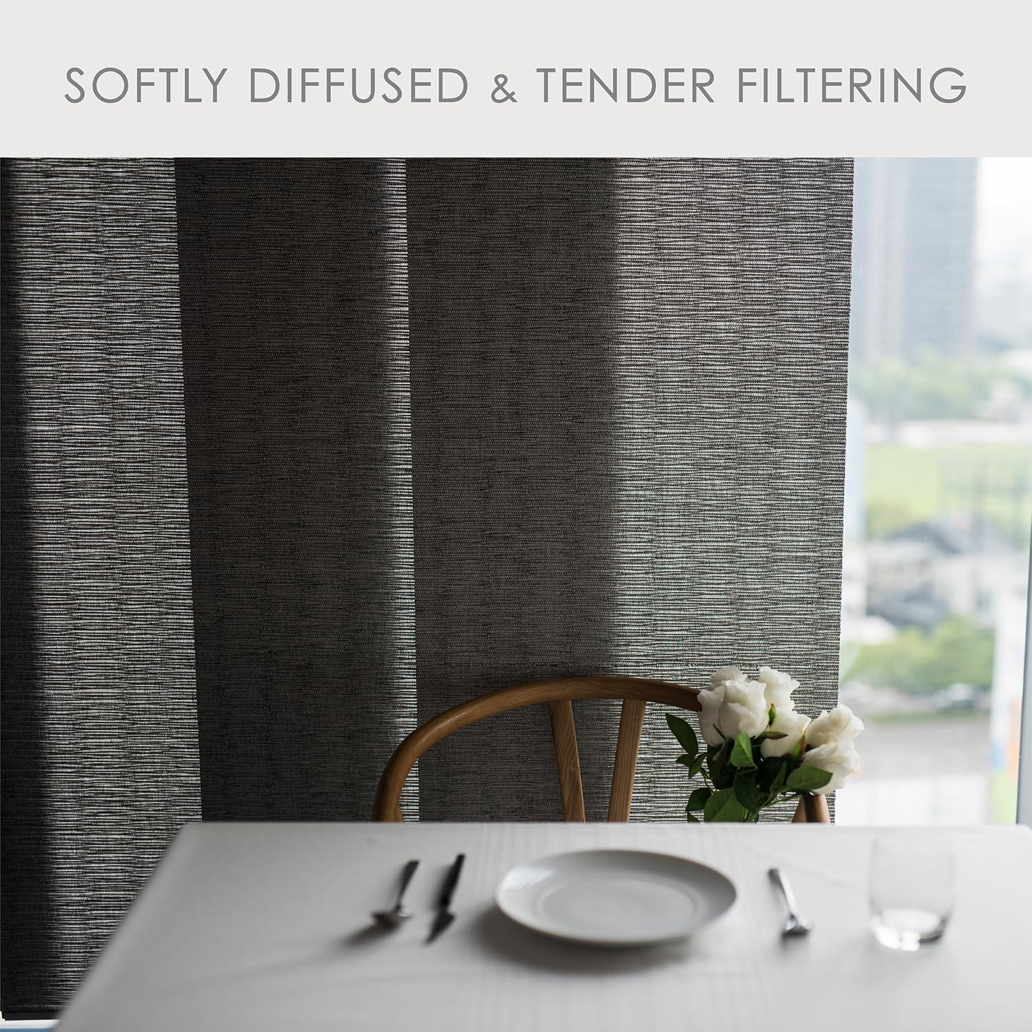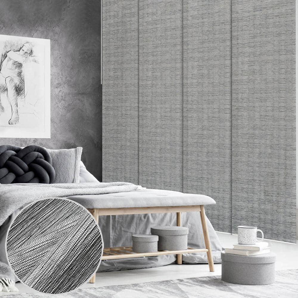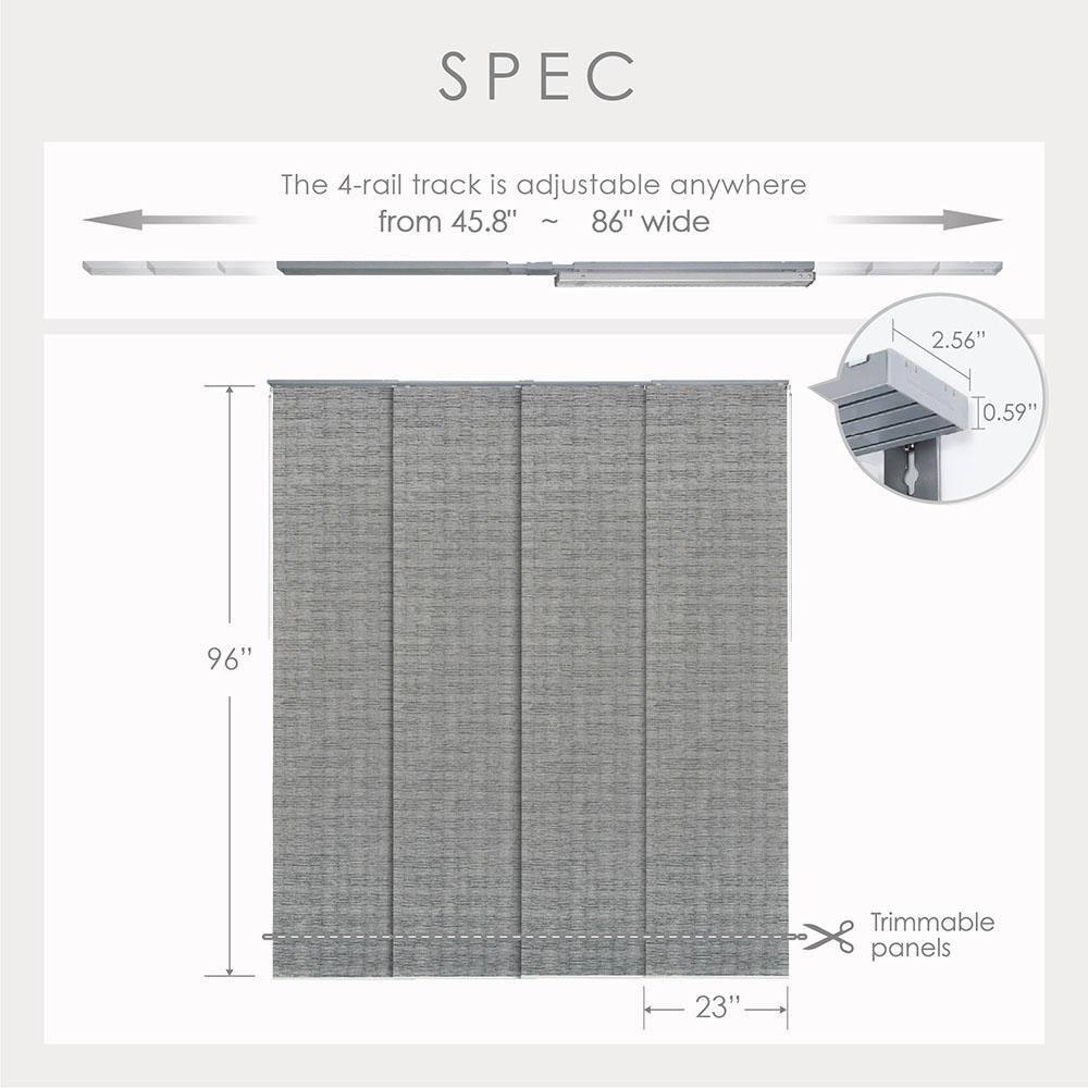 Elevate your space with the Munich Castle Gray Cordless Woven Fabric Sliding Panel Track Blind. Perfect for large windows, patio doors, and room dividers, these blinds offer a sleek, modern look with easy installation and child-safe features. Adjustable width ensures a perfect fit, while the durable fabric provides privacy and light filtering.