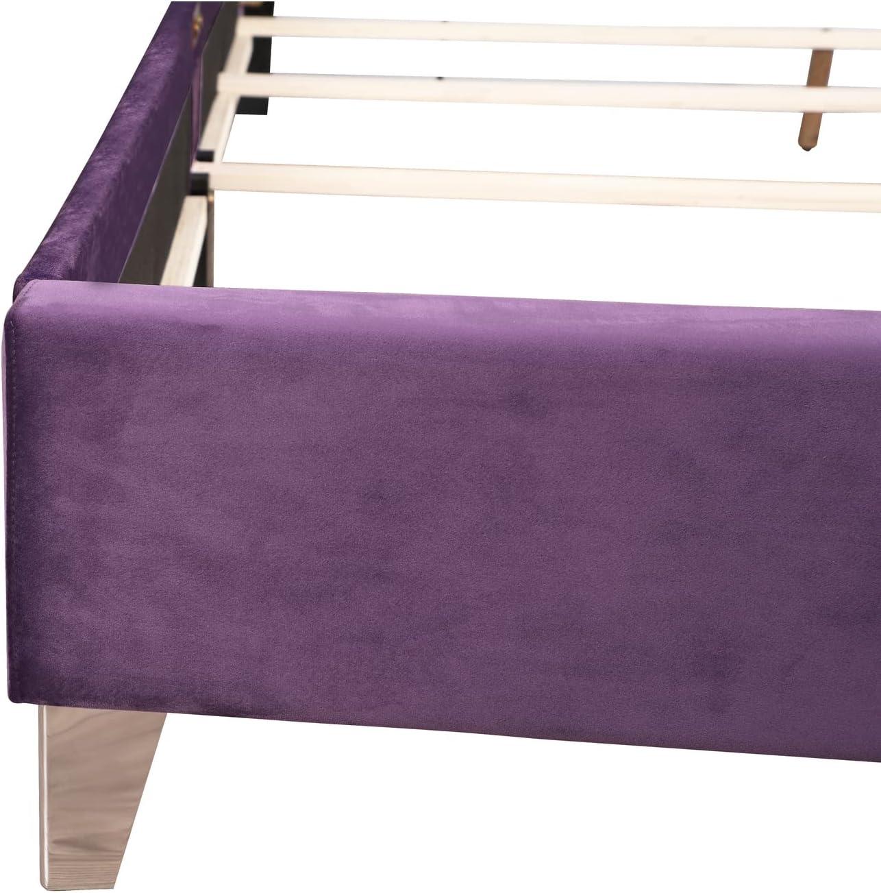 Experience luxury with this purple tufted upholstered queen bed. Featuring a deep tufted headboard, nailhead trim, and soft velvet fabric, it combines comfort and style. Requires a box spring.