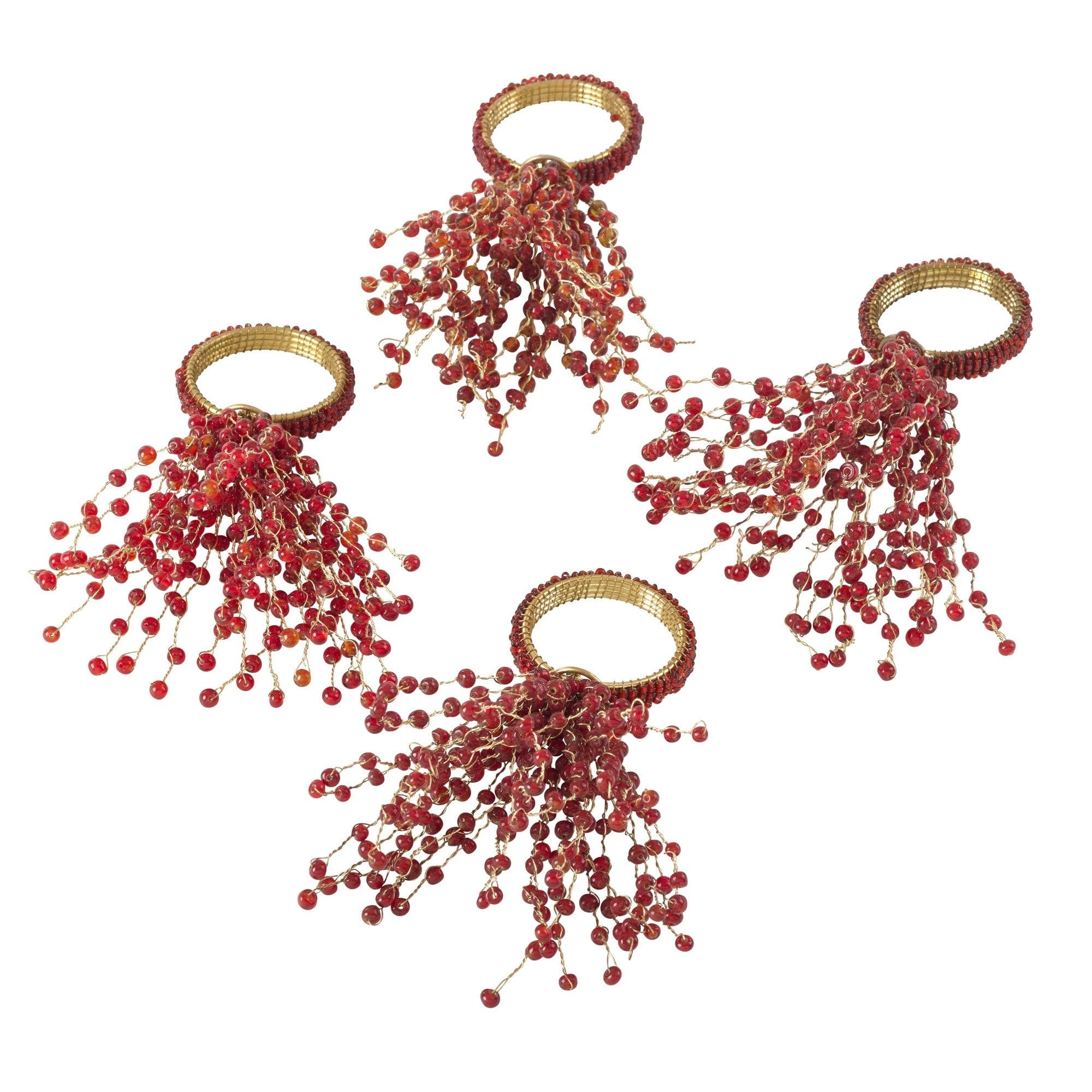 Red Beaded Burst Design Napkin Ring Set of 4 - Red - MultiColor
